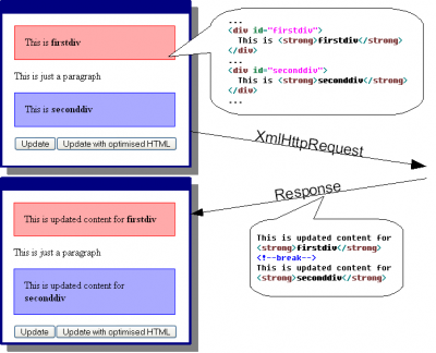 As we have seen, HTML may be altered by a helpful optimiser. This means that Ajax apps can break subtly if they request and process HTML documents in certain ways. Consider:
